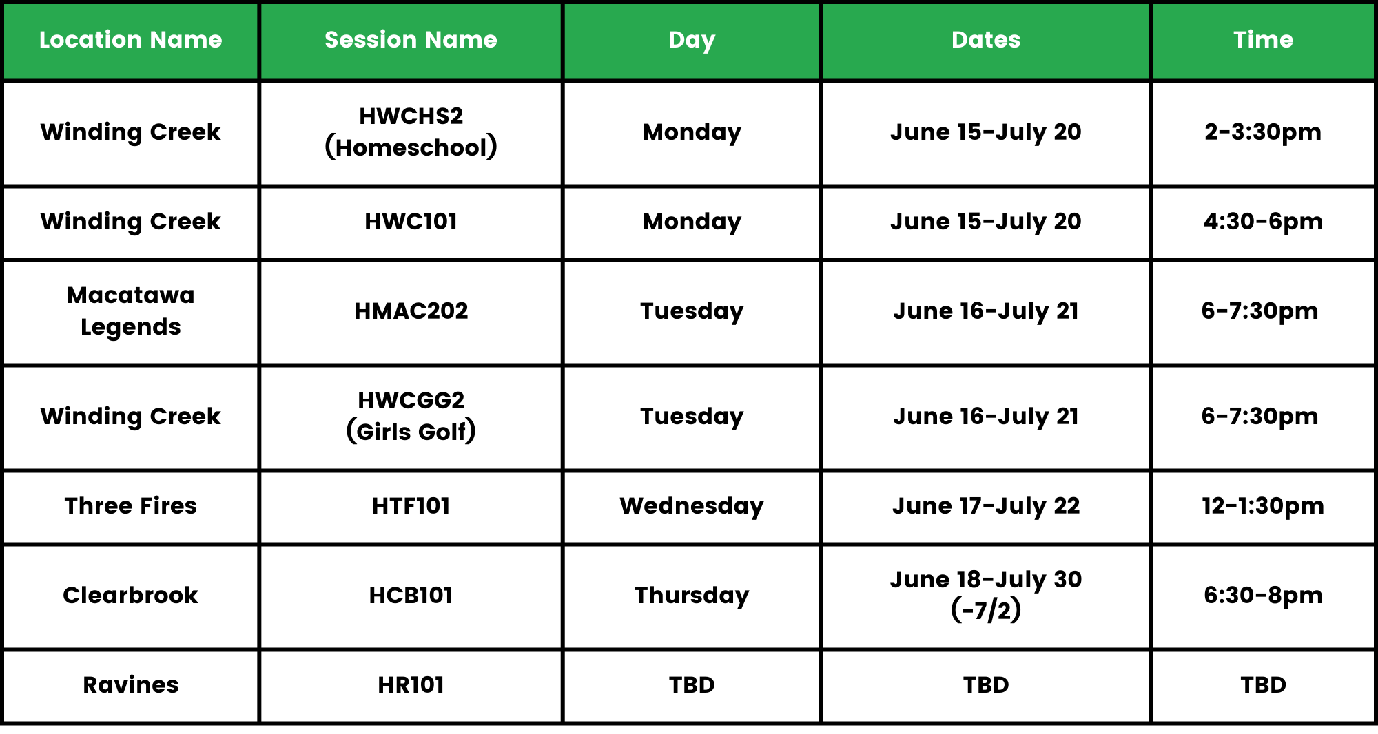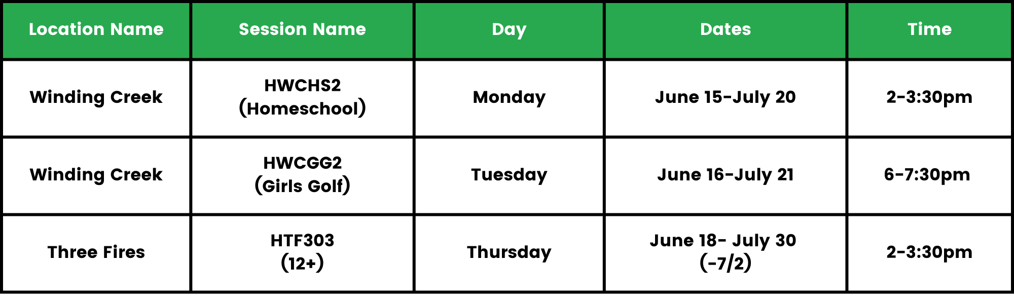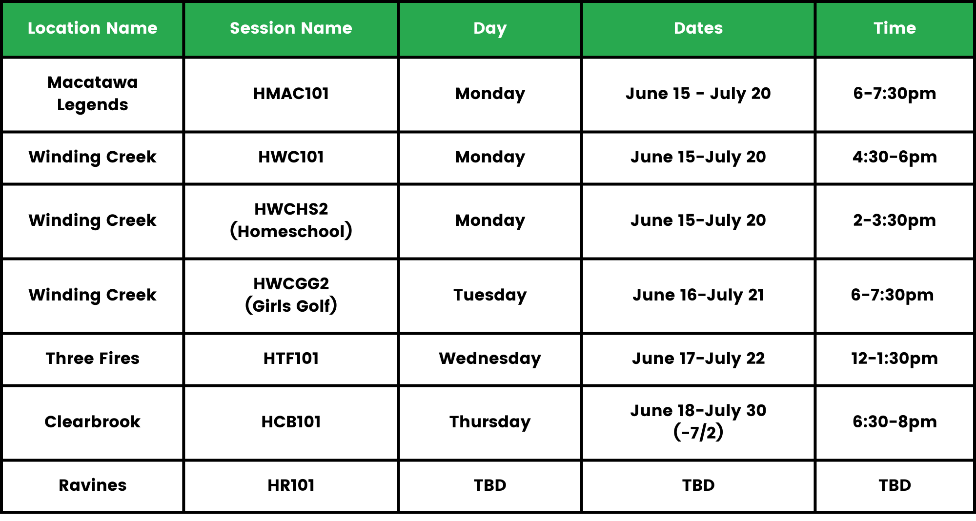 Note: Golf clubs are not required! Golf attire is only required at country club locations.