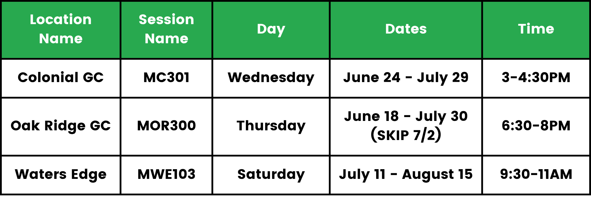 Note: Golf clubs are not required! Golf attire is only required at country club locations.